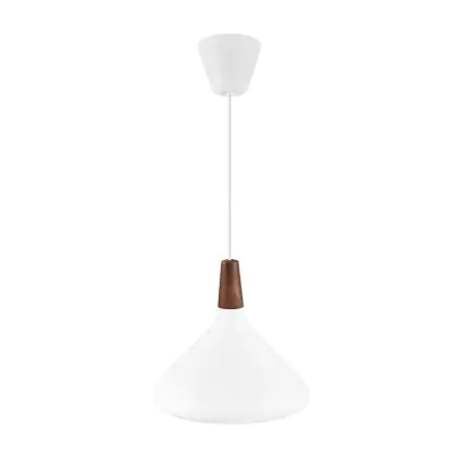 Die Nordlux Pendelleuchte aus der Modellreihe Nori zeichnet sich durch ein modernes Design und einen schicken Materialmix aus. Der Lampenschirm besteht aus Metall. Das Markenzeichen der Modellserie ist die Holzspitze in geöltem Nussbaum. Hinweis: Die Leuchte kommt ohne Leuchtmittel daher - passende E27 LED-Lampen finden Sie jedoch in unserem Shop.