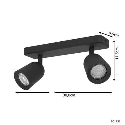 Eglo Decke Spot Camaldoli Stahl Schwarz | Geeignet für 2x GU10