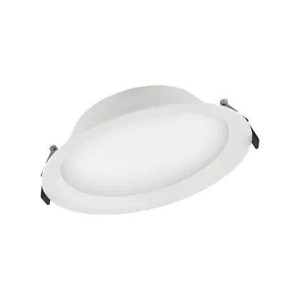 Bei dem Produkt “Ledvance LED Downlight DN200 Weiß 35W 3150lm - 865 | 215m - Ausschnitt 200mm - IP44” handelt es sich um einen effizienten LED-Deckenspot, welcher Licht in der Farbtemperatur 6500K - Tageslichtweiß ausstrahlt und durch eine lange Lebensdauer punktet. Das Downlight ist recycelbar und umweltfreundlich, denn es enthält kein Quecksilber.