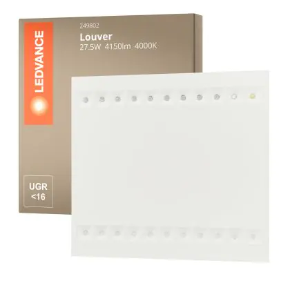 Das Ledvance LED Panel Louver 27.5W 4150lm - 840 Kaltweiß | 60x60cm - UGR ist ein modernes LED-Panel, welches Licht in der Farbtemperatur 4000K - Kaltweiß ausstrahlt und mit einer langen Lebensdauer punktet. Mit dem hochwertigen Panel, welches ideal als Allgemeinbeleuchtung verwendet werden kann, sparen Sie nicht nur Energiekosten, sondern steigen auch auf eine langlebige und flackerfreie Lichtlösung um.