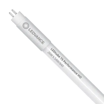 Die Mehrfachpackung 10x Ledvance LED Röhre T5 Performance (HF) High Output 26W 4000lm - 840 Kaltweiß | 115cm - Ersatz Für 54W ist eine effiziente LED-Röhre und der perfekte Ersatz für Ihre konventionelle Leuchtstoffröhre mit 54W und einem G5. Die Röhre hat eine Länge von 1149 mm und einen Durchmesser von 18.5 mm. Zudem strahlt das Produkt Licht in der Farbtemperatur 4000K - Kaltweiß aus und punktet durch eine lange Lebensdauer.