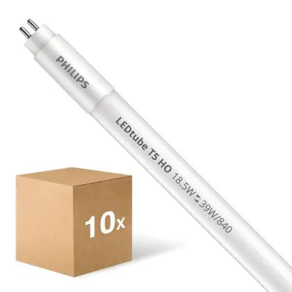 Die Mehrfachpackung 10x Philips LEDRöhre T5 MASTER (Mains) High Output 18.5W 2800lm - 840 Kaltweiß | 85cm - Ersatz Für 39W ist eine effiziente LED-Röhre und der perfekte Ersatz für Ihre konventionelle Leuchtstoffröhre mit 39W und einem G5. Die Röhre hat eine Länge von 863 mm und einen Durchmesser von 19 mm. Zudem strahlt das Produkt Licht in der Farbtemperatur 4000K - Kaltweiß aus und punktet durch eine lange Lebensdauer.