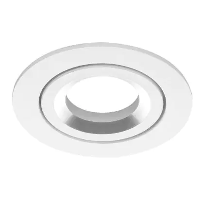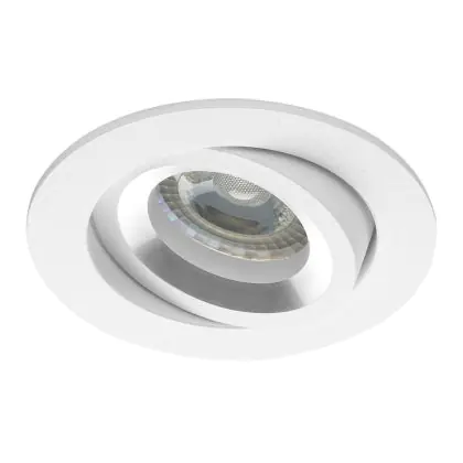 Das Gehäuse aus weißem Aluminium hat einen Gesamtdurchmesser von 82 mm und einen Ausschnitt von 69 mm für den Einsatz des GU10-Leuchtmittels. Die Installationstiefe beträgt 75 mm. Das Produkt ist bis zu 40° schwenkbar und kann damit gezielt bestimmte Bereiche oder Objekte beleuchten.