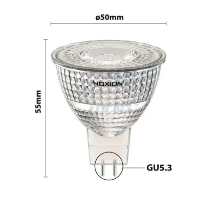 Die Noxion LED-Spot GU5.3 MR16 6.1W 621lm 36D - 840 Kaltweiß | Ersatz für 50W ist eine effiziente GU5.3 LED-Lampe. Das Produkt der Marke Noxion ist der perfekte Ersatz für Ihre konventionelle Halogenlampe mit 50W und einem GU5.3-Sockel, bei dem die beiden Stifte einen Abstand von 5,3 mm zueinander haben. Die Abkürzung MR16 zeigt Ihnen, dass der Reflektor einen Durchmesser von 5 cm hat. Zudem strahlt das Produkt Licht in der Farbtemperatur 4000K - Kaltweiß aus und punktet durch eine lange Lebensdauer.