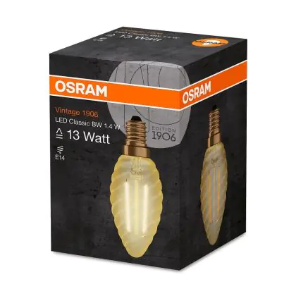 Diese moderne Osram Vintage 1906 LED E14 strahlt eine extra warmweiße Farbtemperatur aus. Die Lichtfarbe von 2.500 Kelvin hat einen besonders hohen Rotanteil und kreiert somit eine behagliche Stimmung mit viel Gemütlichkeit.