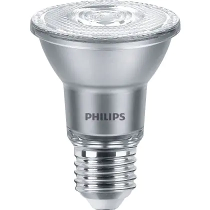 Der Philips Master Value LED Glühbirne Reflektor E27 PAR20 6W 515lm 40D - 930 Warmweiß | Höchste Farbwiedergabe - Dimmbar - Ersatz für 50W ist ein leistungsstarker LED-Strahler mit E27-Sockel. Er kommt mit einer hohen Lebensdauer von 25000 Stunden daher und spart Ihnen somit nicht nur Energie-, sondern auch Austausch- und Wartungskosten. Im Preis ist zudem eine All-In-Garantie von 5 Jahre enthalten.
