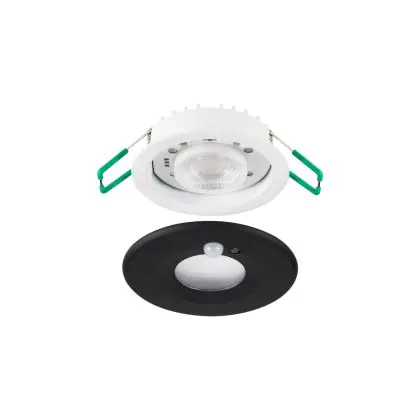 Der Sylvania LED-Spot Start HO PIR Aluminium Schwarz 10W 1050lm 50D - 827-830-840 CCT | Ausschnitt 68mm - IP65 - Sensor ist ein LED-Einbaustrahler, welcher Licht in der Farbtemperatur 4000K - Kaltweiß ausstrahlt und durch eine lange Lebensdauer punktet. Die Einbauleuchte ersetzt konventionelle Halogenstrahler.