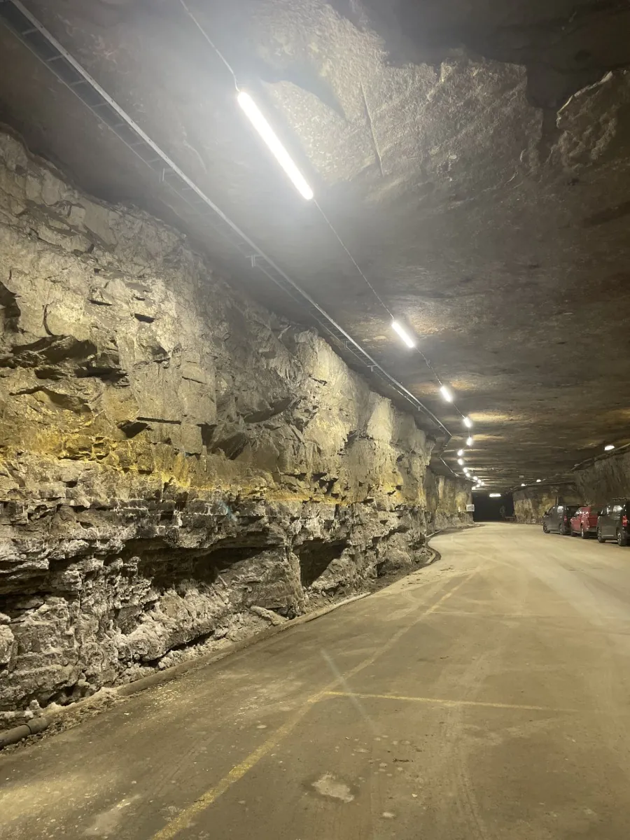 Die Fahrt mit dem Auto in die Minenstollen, 40 Meter unter der Erde, war etwas ganz Besonderes. Wir besuchten das Bergwerk, nachdem unsere Noxion-Leuchten installiert wurden.
